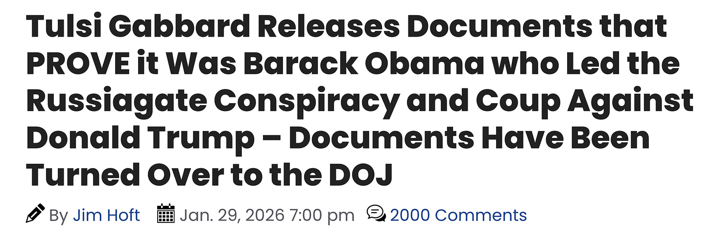 On Thursday January 29th, it was reported that DNI Tulsi Gabbard had declassified documents effectively proving that it was President Obama who led the conspiracy attempt to frame Donald Trump over muh Russia Collusion before the 2016 election - Obama personally ordered the manufacturing of bogus intelligence reports which gave basis for the spying to take place.