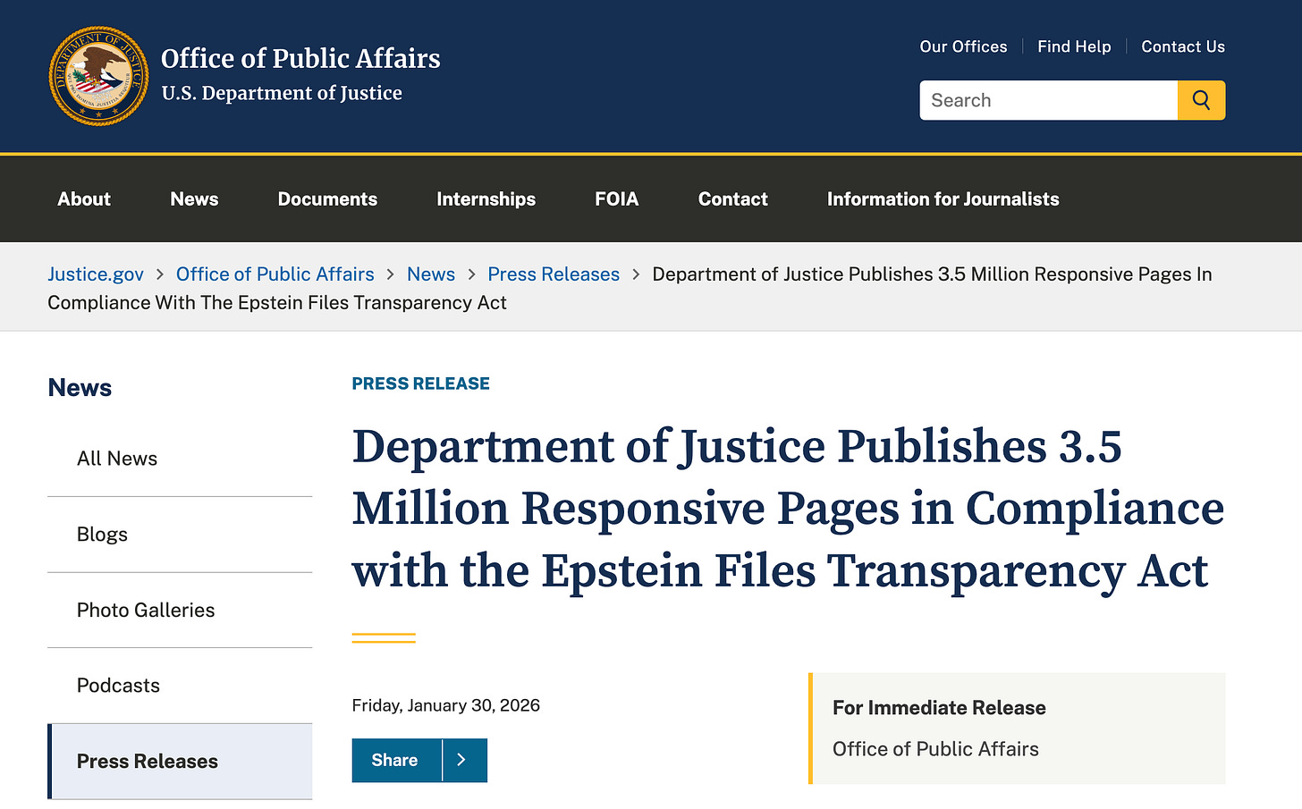 There is criticism on the Internet, as there always is, that the Trump administration is not moving fast enough or putting enough information out to the public, but given that these are 3.5 million records, and they all had to be combed through by teams of attorneys to redact information pertaining to witnesses and ongoing investigations, I can understand why it took a few extra weeks to get this out there.