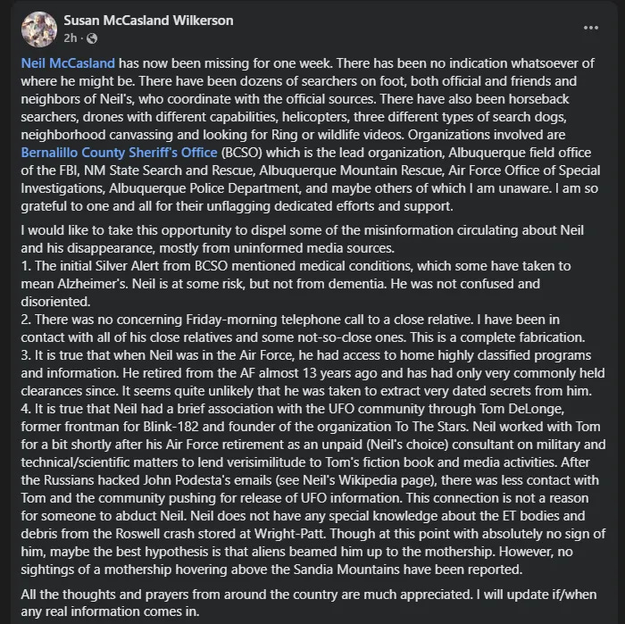 Representative Tim Burchett, one of the people in Congress with a particular interest in the UFO topic, commented on McCasland’s disappearance during a recent podcast. He did not give any extra information that the public doesn’t already know, although he appears to have suspicions about it.