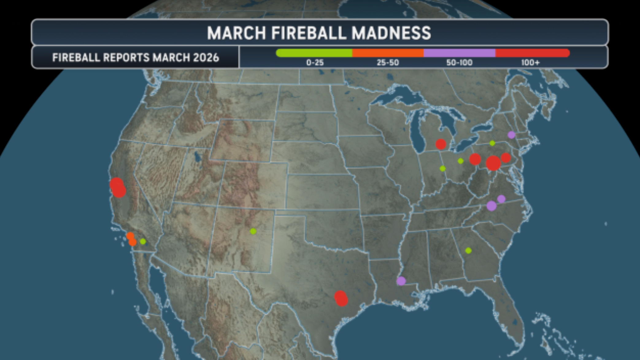 I’m not sure if there are international reports of fireballs that we are missing, or if these reports are mainly confined to the U.S. - this would be an important data point to figure out.